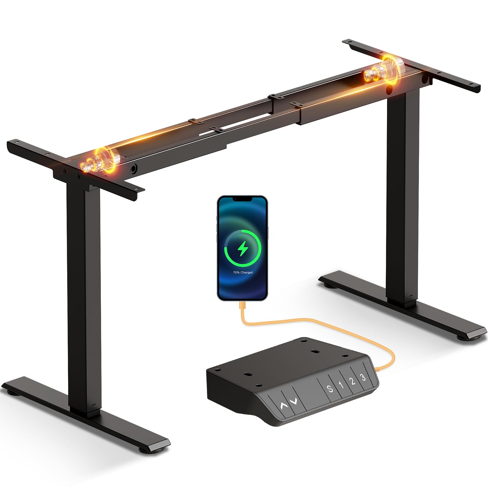 Equipada con dos motores potentes y silenciosos, la estructura OffiGo garantiza una elevación suave y estable, incluso con cargas pesadas. Podrás ajustar la altura de tu escritorio sin interrupciones ni vibraciones molestas.