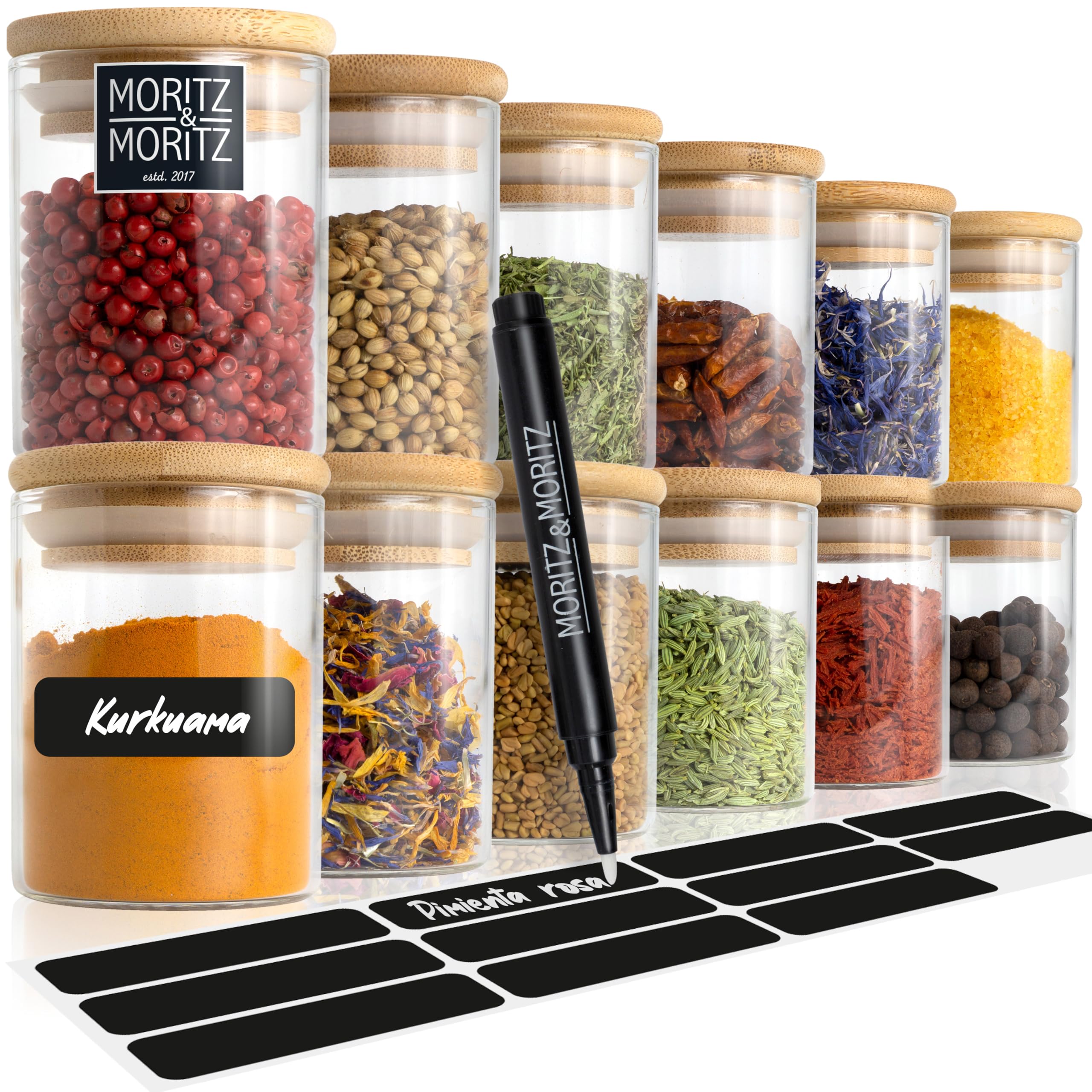 ¡Cazadores de ofertas, este es el momento! 🕒 Moritz & Moritz trae 12 tarros de cristal herméticos para tus especias favoritas. ¡No dejes que el sabor se escape! 😱 Con 24 pegatinas de pizarra y un lápiz, ¡organiza como un chef! 👩🍳 Aprovecha la oferta ahora, ¡o te arrepentirás! 🏃♂️💨