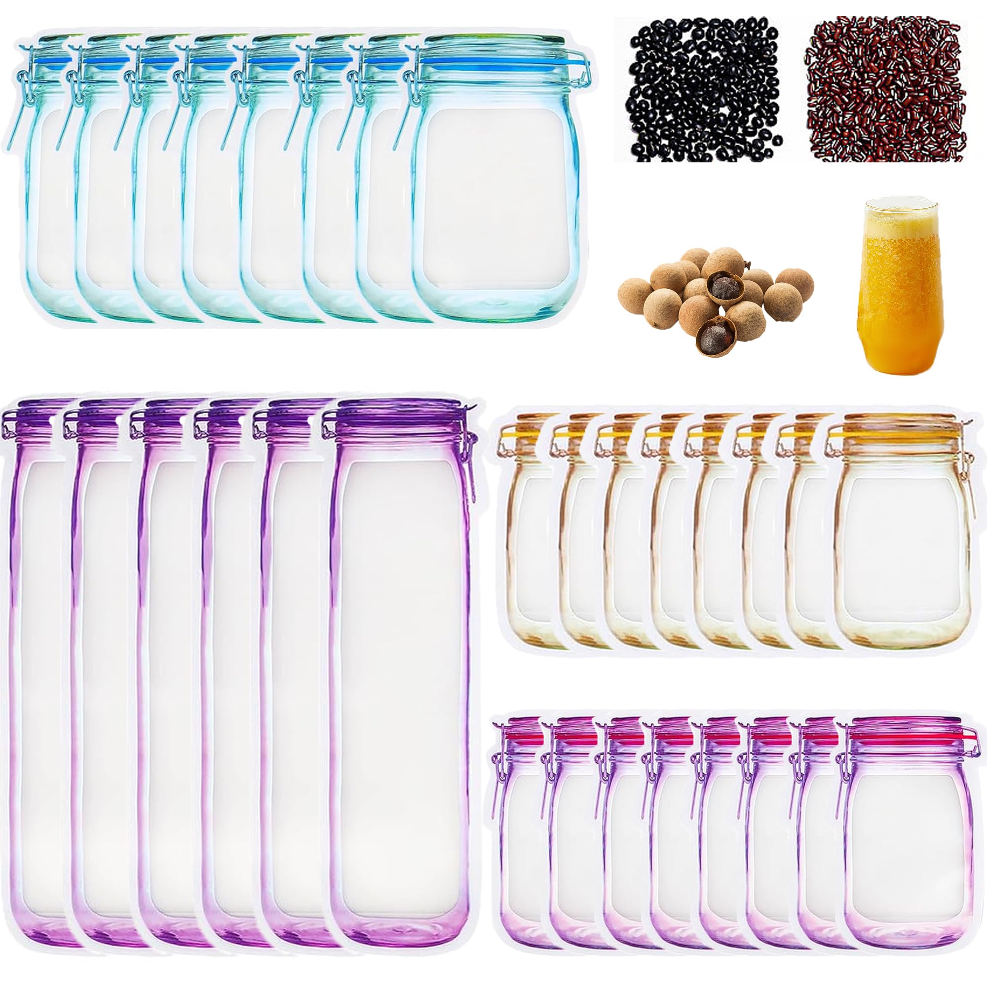 Este set de 30 piezas de bolsas zipper herméticas, con un diseño que simula las clásicas botellas Mason, no solo es estéticamente atractivo, sino también increíblemente funcional. Son perfectas para guardar desde bocadillos y snacks hasta caramelos, galletas, frutos secos e incluso líquidos sin preocuparte por derrames. ¡Una verdadera joya para cualquier cocina moderna! 🎁